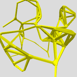 import ComputationalGeometry.*; //Constructing the IsoSkeleton IsoSkeleton skeleton = new IsoSkeleton(this); // Create points to make the network PVector[] pts = new PVector[50]; for (int i=0; i<pts.length; i++) { pts[i] = new PVector(random(-100, 100), random(-100, 100), random(-100, 100) ); } // Add edges to IsoSkeleton for (int i=0; i<pts.length; i++) { for (int j=i+1; j<pts.length; j++) { if (pts[i].dist( pts[j] ) < 60) { skeleton.addEdge(pts[i], pts[j]); } } } // Plotting skeleton.plot(5.0f, .25f); // Thickness as parameter